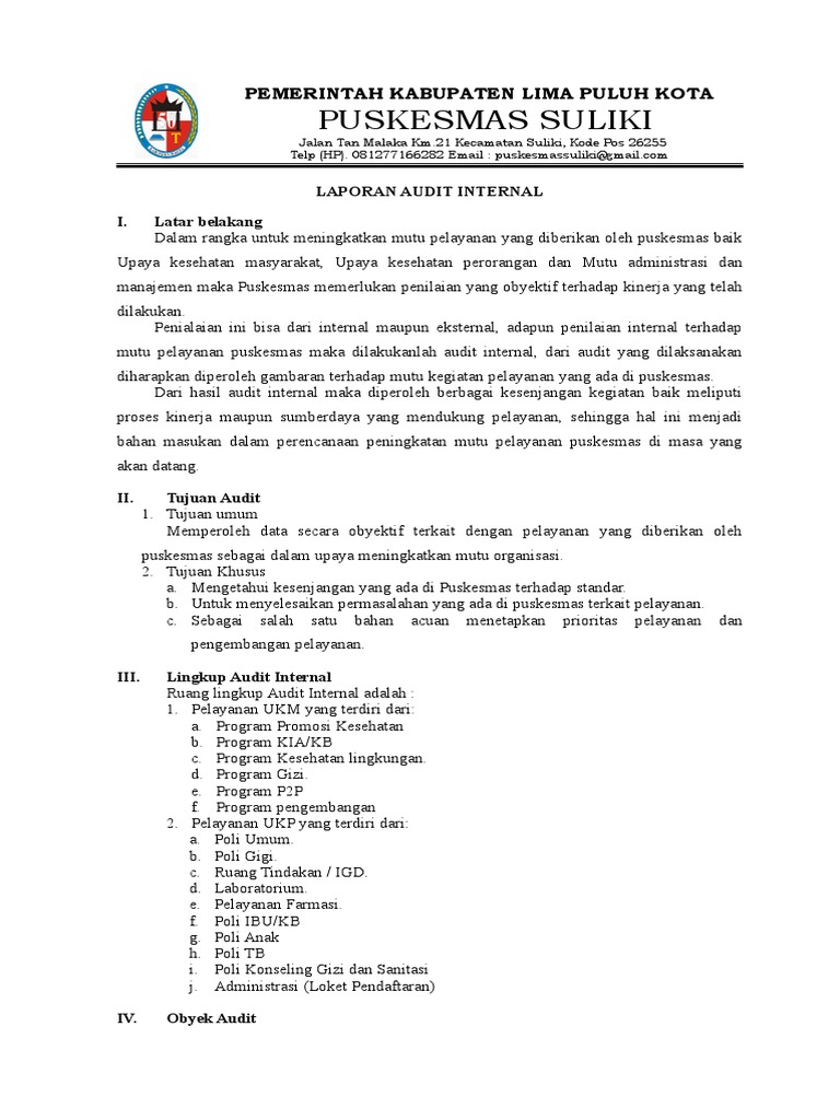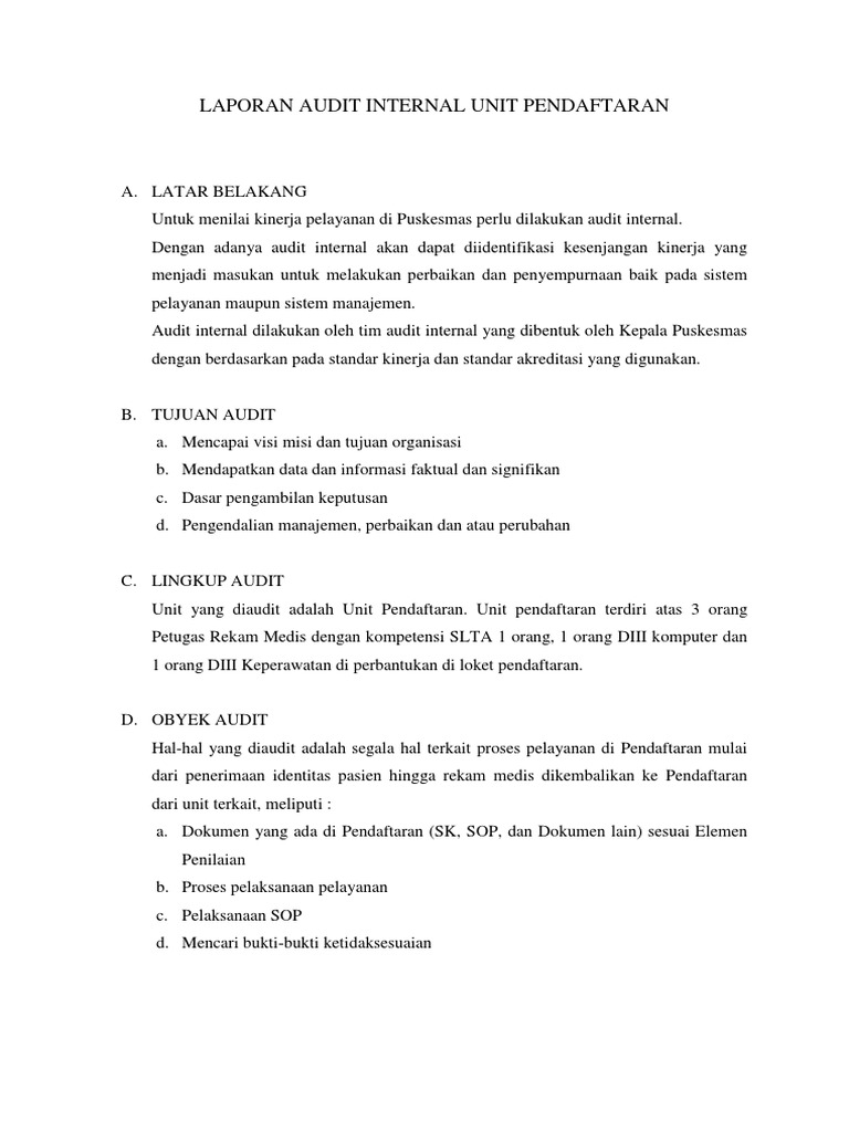 Laporan Audit Internal Puskesmas : Laporan Audit Internal Puskesmas Cisarua Laporan Audit Internal Puskesmas Cisarua Tahun 2020 Puskesmas Cisarua Laporan Audit Internal I Latar Course Hero : Maybe you would like to learn more about one of these?. Maybe you would like to learn more about one of these? Check spelling or type a new query. We did not find results for: