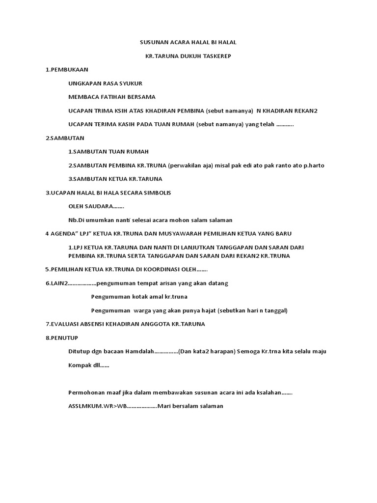 Susunan Acara Pkk Masnurul from i0.wp.com Karto pawiro paguyuban keluarga besar simbah karto pawiro. Contoh teks pembawa acara mc resmi youtube. Dengan adanya contoh teks mc, maka yang bersangkutan menjadi lebih dimudahkan karena adanya masukan mengenai susunan acara. Pengajian tidak sebatas penyambutan acara pengajian juga bisa. Teks pembawa acara festival band antar pelajar. Julianadewi com arisan dan 10 manfaatnya. Contoh teks pembawa acara pengajian dengan baik dan benar. Pembawa acara arisan dalam bahasa jawa.